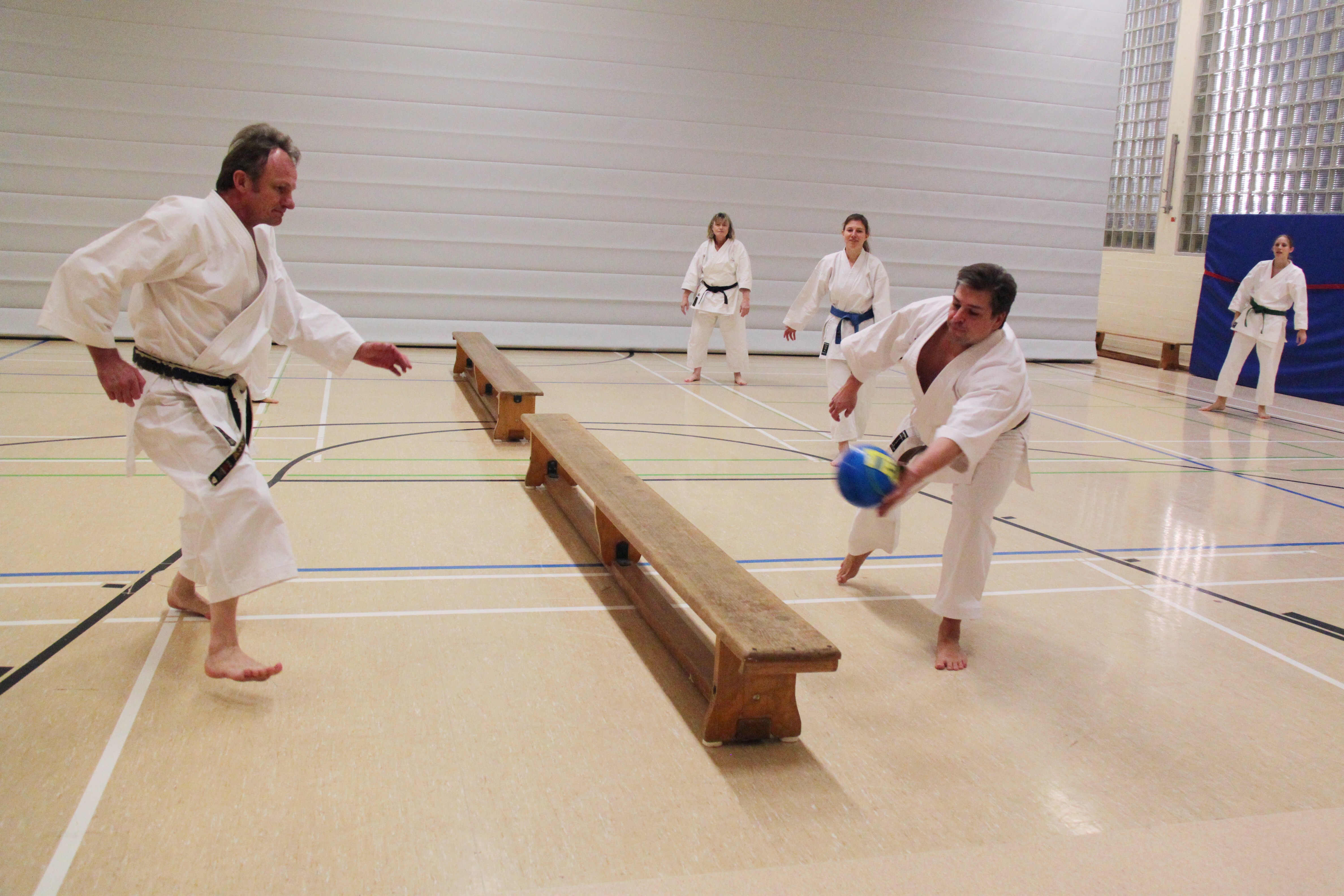 Nach einer Aufwärmphase (Oftmals begleitet durch unser traditionelles Ballspiel, dass Reaktion und Koordination fordert.) beginnt das eigentliche Training, welches sich grob in drei Teile gliedert: